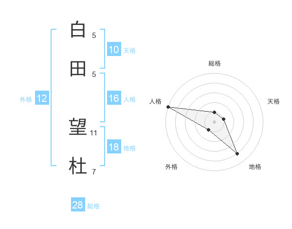 白田 望杜さんの総格は28画の1点!