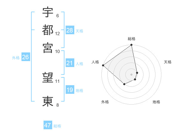 宇都宮 望東さんを姓名の画数から五運を鑑定