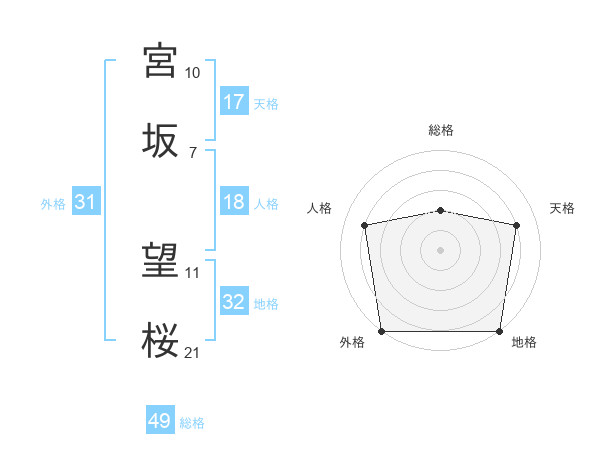 宮坂 望桜さんを姓名の画数から五運を鑑定
