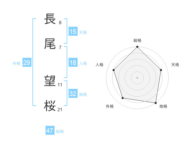 長尾 望桜さんを姓名の画数から五運を鑑定