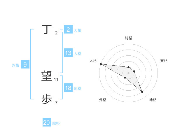 丁 望歩さんの総格は20画の1点!
