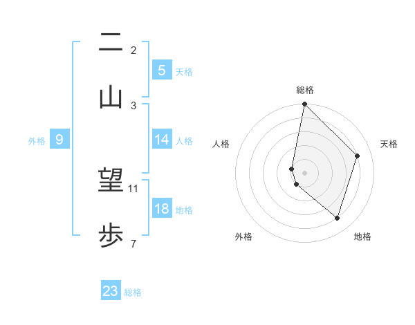 二山 望歩さんの総格は23画の5点!