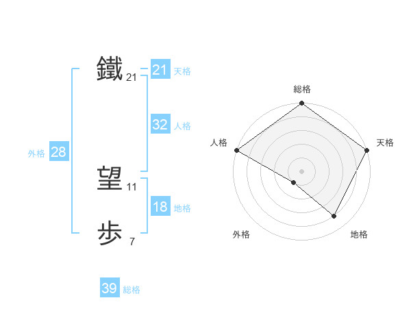 鐵 望歩さんの総格は39画の5点!