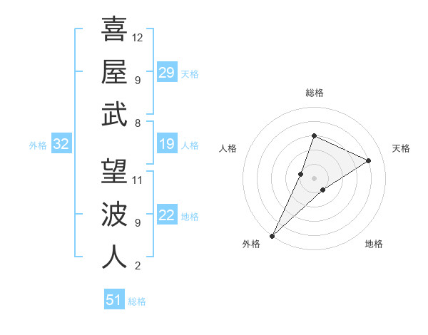 喜屋武 望波人さんの外格は32画の5点!