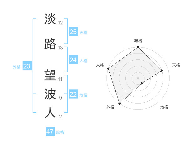 淡路 望波人さんを姓名の画数から五運を鑑定