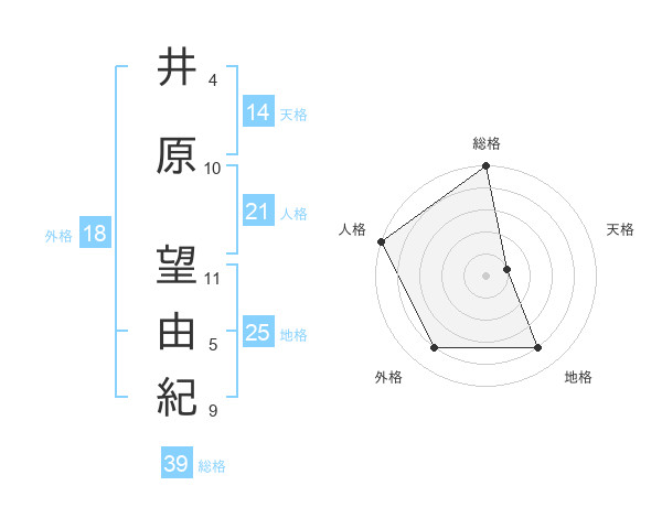 井原 望由紀さんを姓名の画数から五運を鑑定