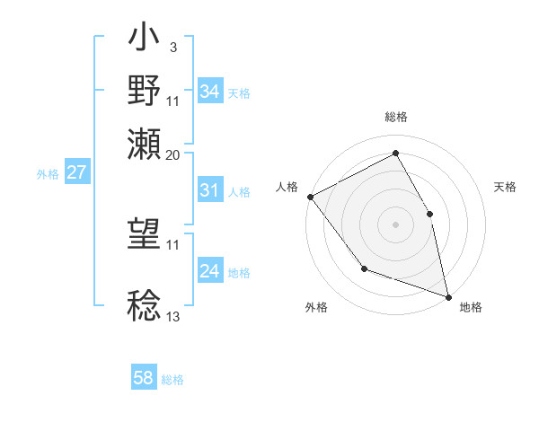 小野瀬 望稔さんを姓名の画数から五運を鑑定