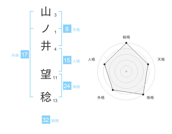 山ノ井 望稔さんを姓名の画数から五運を鑑定