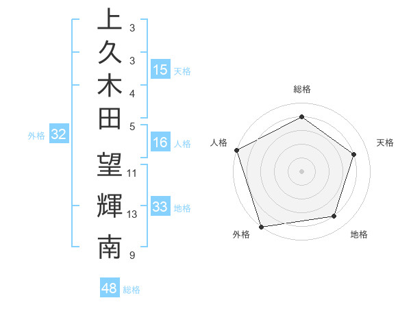 上久木田 望輝南さんを姓名の画数から五運を鑑定