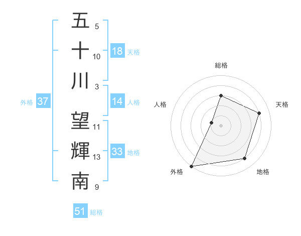五十川 望輝南さんを姓名の画数から五運を鑑定