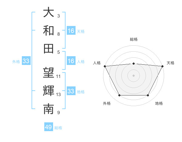 大和田 望輝南さんを姓名の画数から五運を鑑定