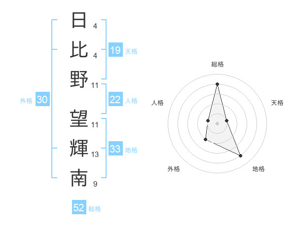 日比野 望輝南さんの総格は52画の4点!