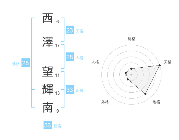 西澤 望輝南さんの天格は23画の5点!