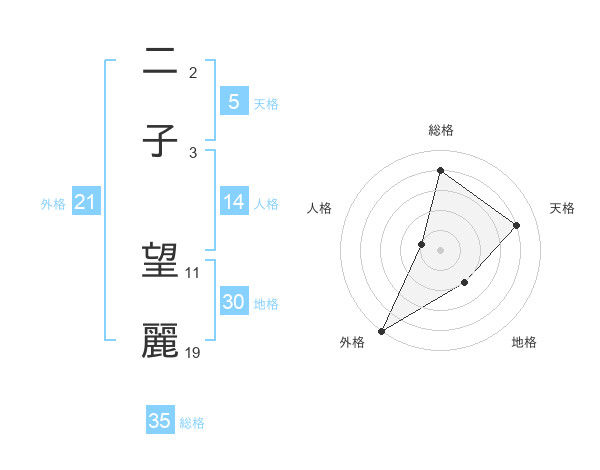 二子 望麗さんの総格は35画の4点!