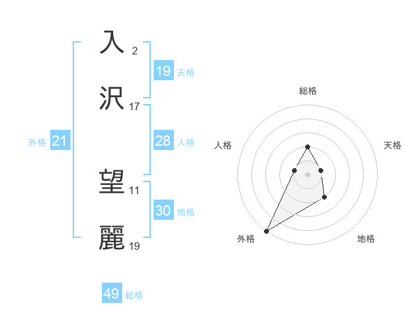 入沢 望麗さんの外格は21画の5点!