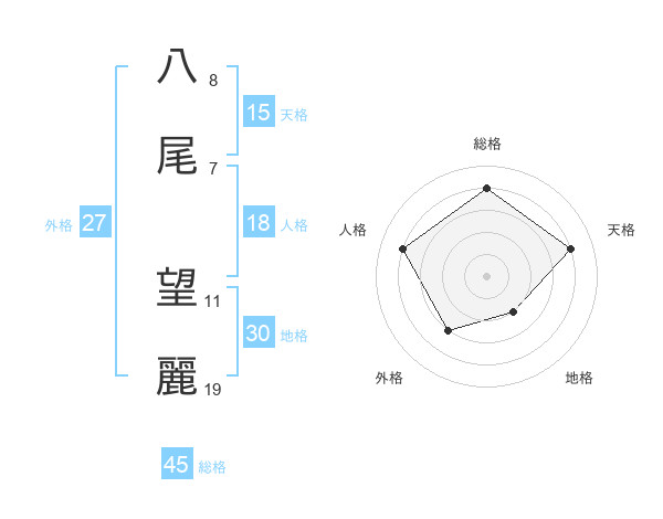八尾 望麗さんの総格は45画の4点!