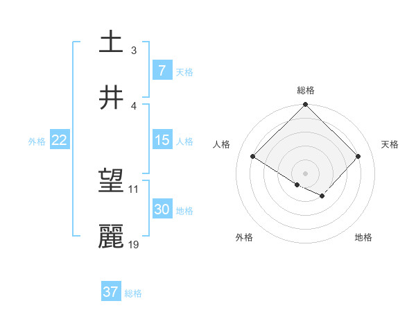 土井 望麗さんの総格は37画の5点!