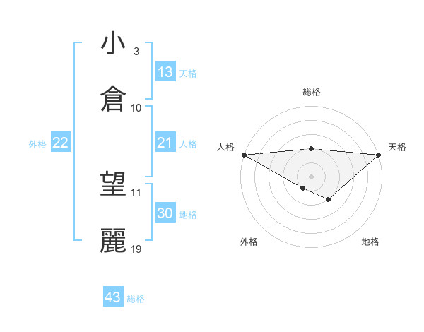 小倉 望麗さんの天格は13画の5点!