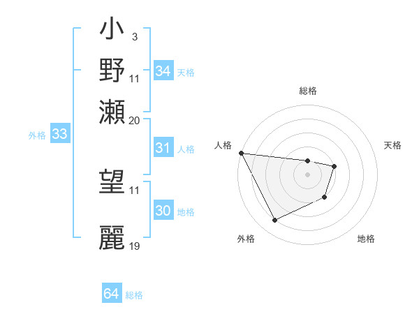 小野瀬 望麗さんを姓名の画数から五運を鑑定