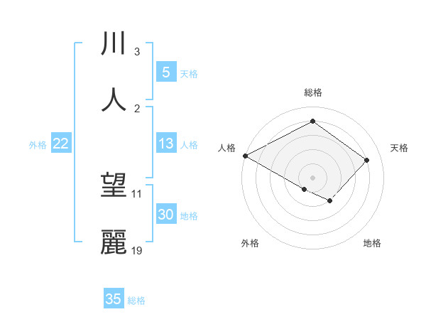 川人 望麗さんの総格は35画の4点!