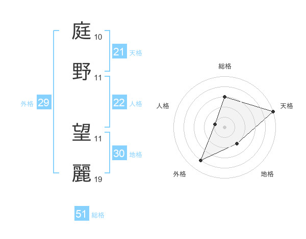 庭野 望麗さんを姓名の画数から五運を鑑定