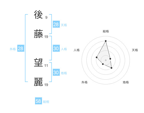 後藤 望麗さんを姓名の画数から五運を鑑定