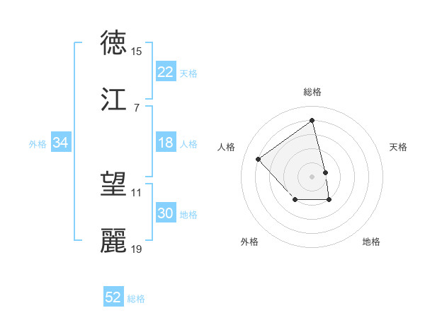 徳江 望麗さんの総格は52画の4点!
