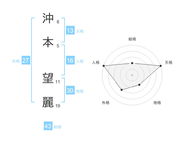 沖本 望麗さんを姓名の画数から五運を鑑定