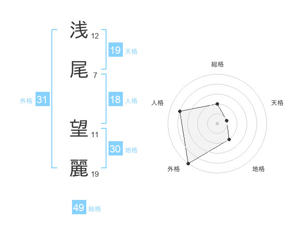 浅尾 望麗さんの天格は19画の1点!