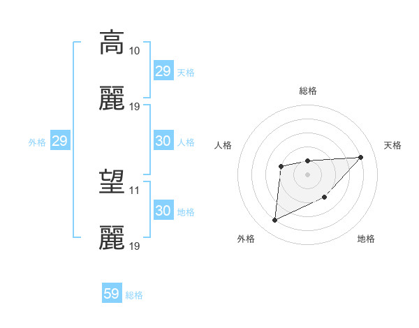高麗 望麗さんの総格は59画の1点!