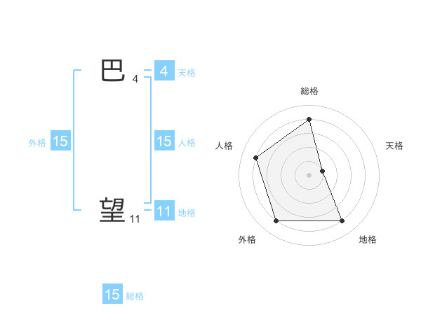巴 望さんの総格は15画の4点!