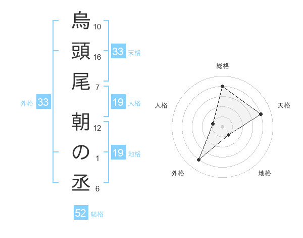 烏頭尾 朝の丞さんの外格は33画の4点!
