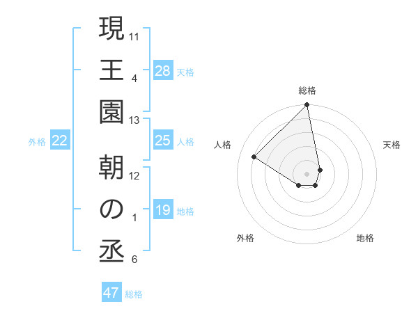 現王園 朝の丞さんの総格は47画の5点