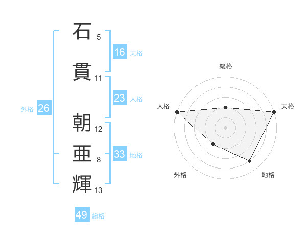 石貫 朝亜輝さんを姓名の画数から五運を鑑定