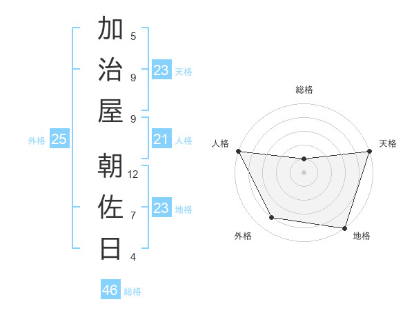 加治屋 朝佐日さんを姓名の画数から五運を鑑定