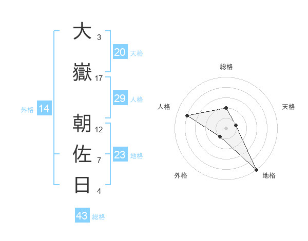 大嶽 朝佐日さんを姓名の画数から五運を鑑定