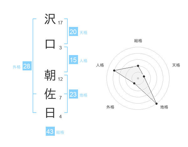 沢口 朝佐日さんを姓名の画数から五運を鑑定