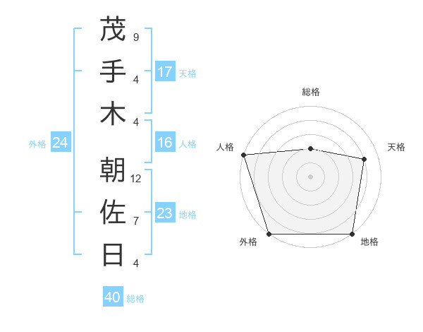 茂手木 朝佐日さんを姓名の画数から五運を鑑定