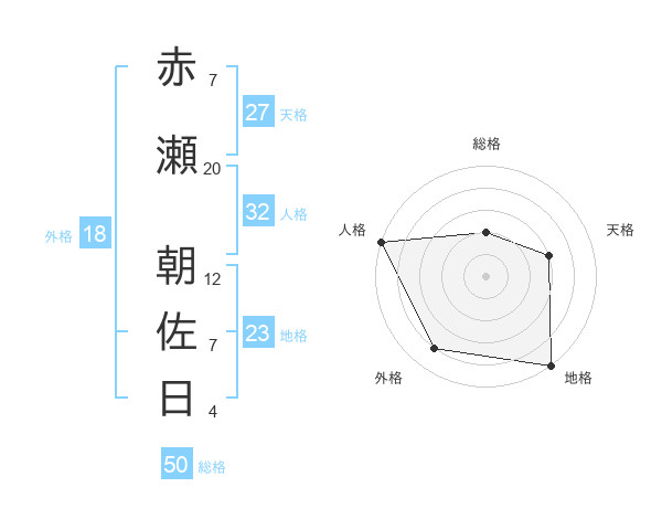 赤瀬 朝佐日さんの総格は50画の2点!