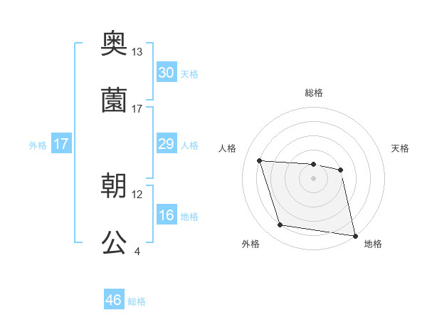 奥薗 朝公さんの外格は17画の4点!