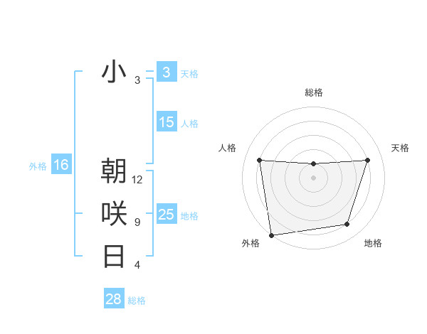 小 朝咲日さんの地格は25画の4点!