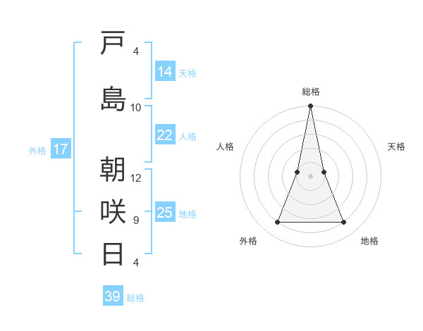 戸島 朝咲日さんを姓名の画数から五運を鑑定