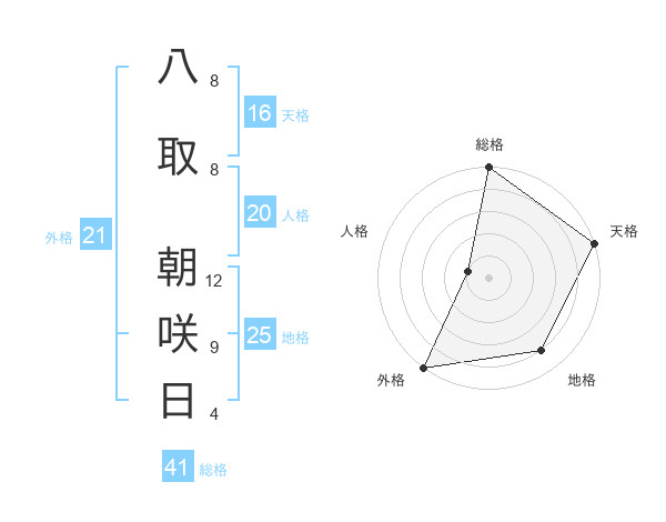 八取 朝咲日さんの外格は21画の5点!