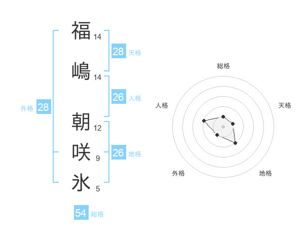 福嶋 朝咲氷さんを姓名の画数から五運を鑑定