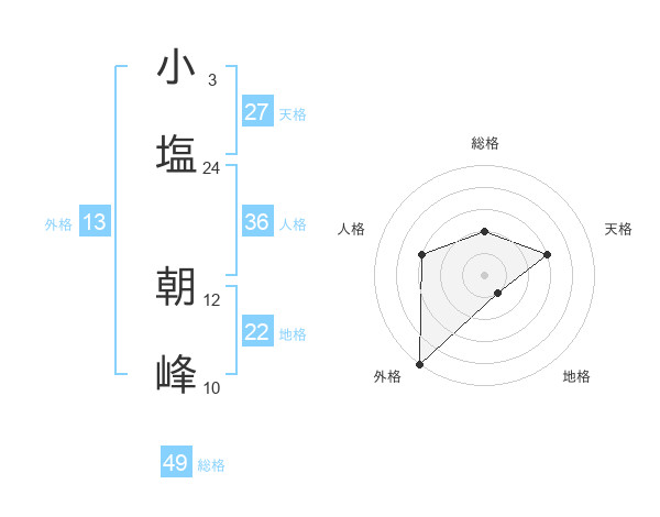 小塩 朝峰さんの総格は49画の2点!