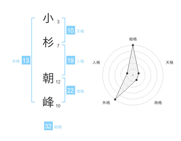 小杉 朝峰さんの総格は32画の5点!