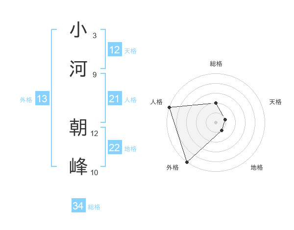 小河 朝峰さんを姓名の画数から五運を鑑定