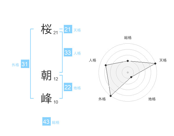 桜 朝峰さんの天格は21画の5点!