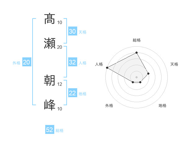 髙瀬 朝峰さんを姓名の画数から五運を鑑定