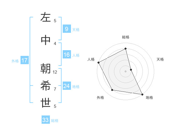 左中 朝希世さんの外格は17画の4点!